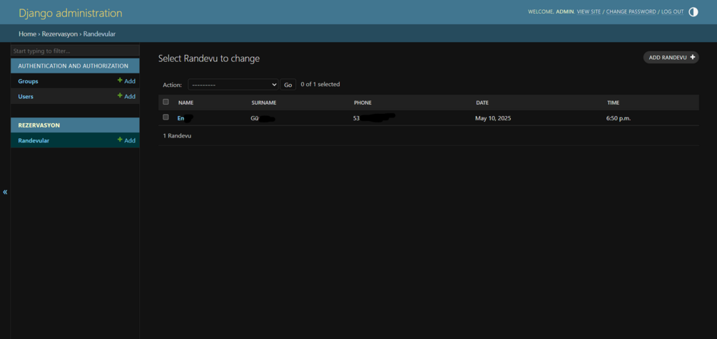 Simple Python Django Reservation/Appointment System with Admin Panel